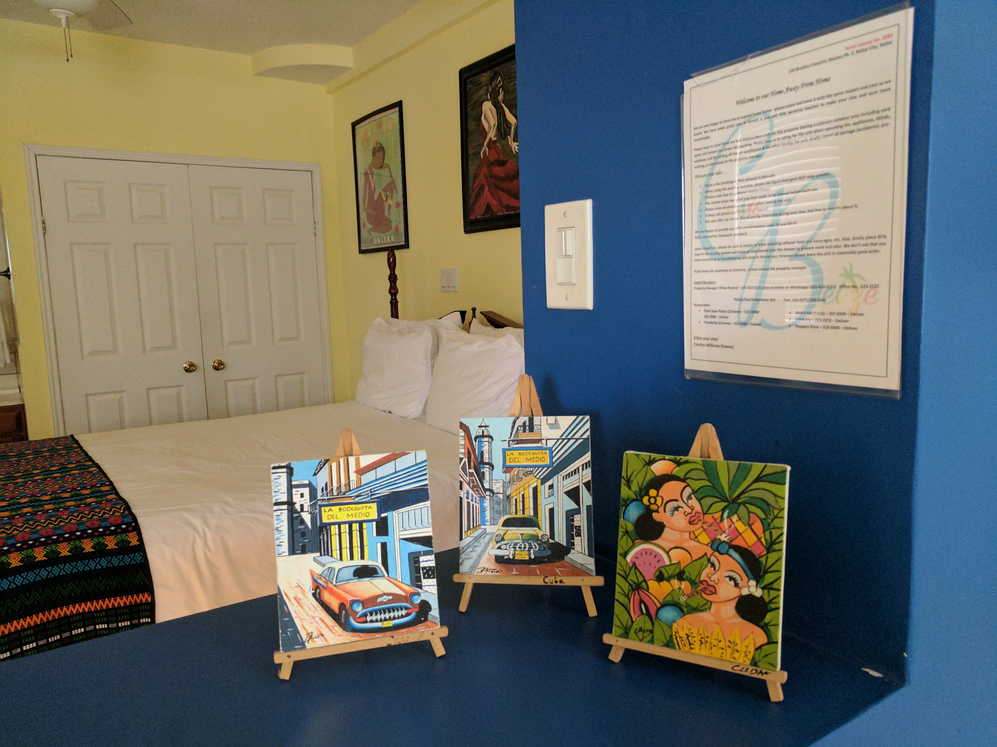 Studio Apartment A Bedroom View Image 5 of 9 Cozy Studio Apartment One of two charming, open concept apartments. Air conditioned, cable, Wi-Fi, laundry access, coconut trees, canal view. Half block from city bus, 2 blocks from restaurants, bars, shops and banks. Amenities include: Wi-Fi Kitchen Free parking on premises Washer Dryer Air conditioning Cable TV Bath Essentials Check Availability